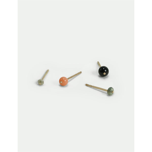 Limited edition stone studs made from beautiful vintage coral beads. Each coral bead is set with a small 14k yellow gold ball and long post. Coral bead measures approximately 4mm.
