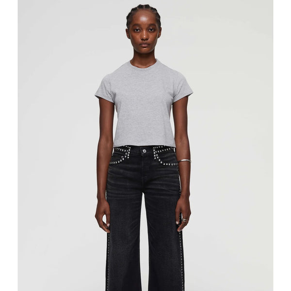 Soft cotton tee with a crew neckline and a loose, boxy fit. Inspired by men's undershirts in the 1950's, when suit trousers were high waisted and so undershirts were cropped. Flattering and easy- a perennial best seller. Great for layering.