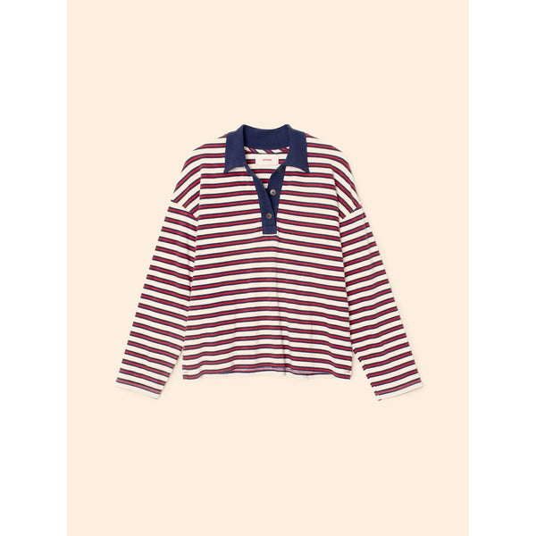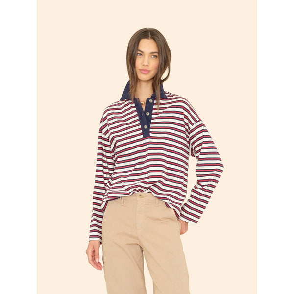 Classic rugby shirt in a soft striped cotton jersey. Features a henley button-front and a contrast collar and placket. Easy, relaxed fit.