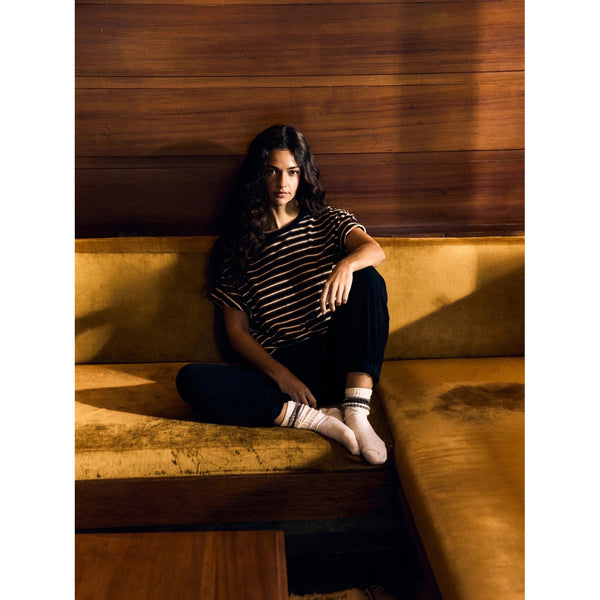 Vintage inspired lounge pant in a soft and lightweight cotton jersey. Features a tonal hidden drawstring, side seam pockets, and elasticized ankle cuffs.