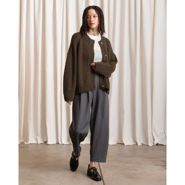 The softest everyday cardigan in a lofty merino wool and baby alpaca blend. Front button closure and tapered drop sleeve. Relaxed, boxy fit.