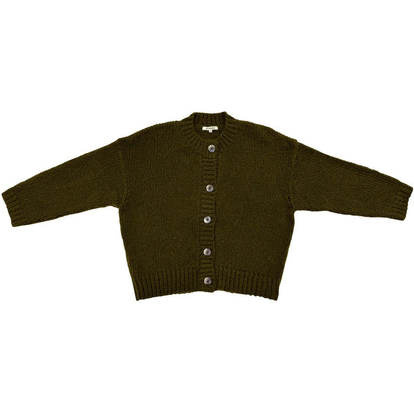 merino crew-neck cardigan in olive
