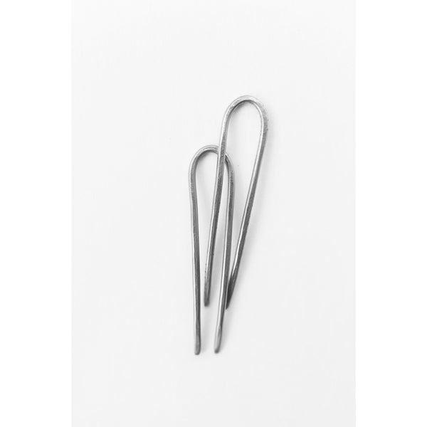 Hand forged tiny hair pins, crafted from lightweight stainless steel. Perfect for a very tiny bun, man bun, kids topknot, or half up topknot. Durable, lightweight, and slightly flexible for a comfortable, secure hold. Also great as a bobby pin. Sold as a pair.