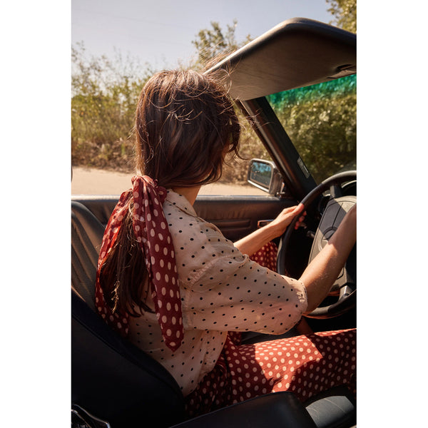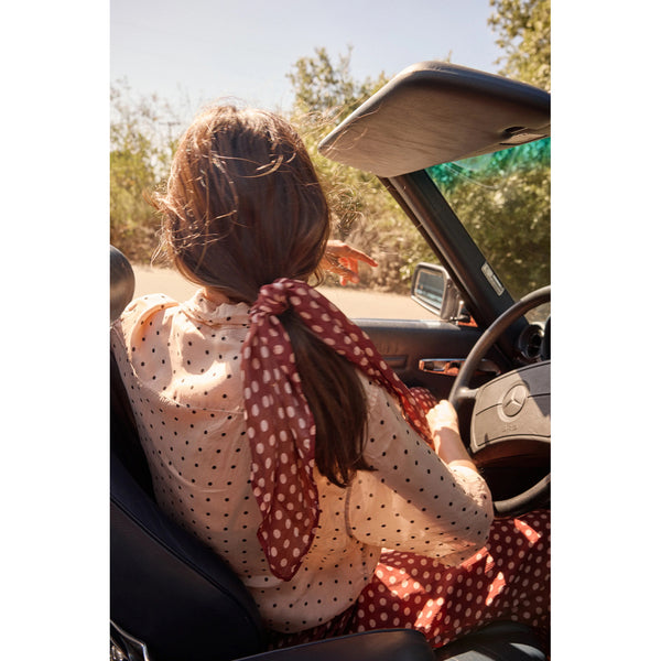 Square scarf in polka dot cappuccino. Measures approximately 23" x 23".